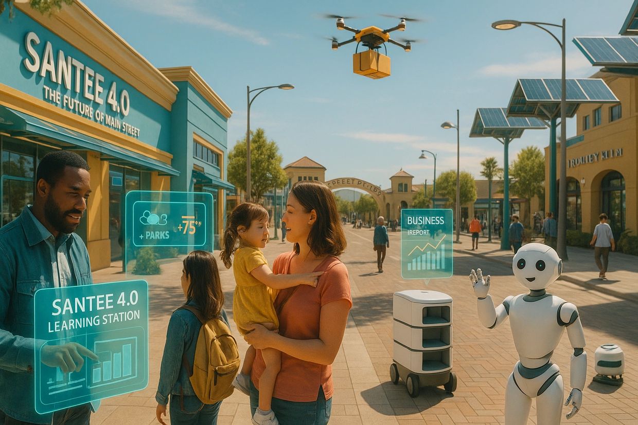 Today, Santee is embracing the Fourth Industrial Revolution in ways that feel distinctly human. Our local innovators, families, and business owners are building bridges between craftsmanship and modern tools—using robotics, virtual experiences, and smart design not to distance us, but to bring neighbors closer together. Retail 4.0 reimagines the Main Street experience, Restaurant 4.0 honors hospitality with digital warmth, and Hotel 4.0 welcomes travelers into a future where comfort and sustainability work hand in hand.